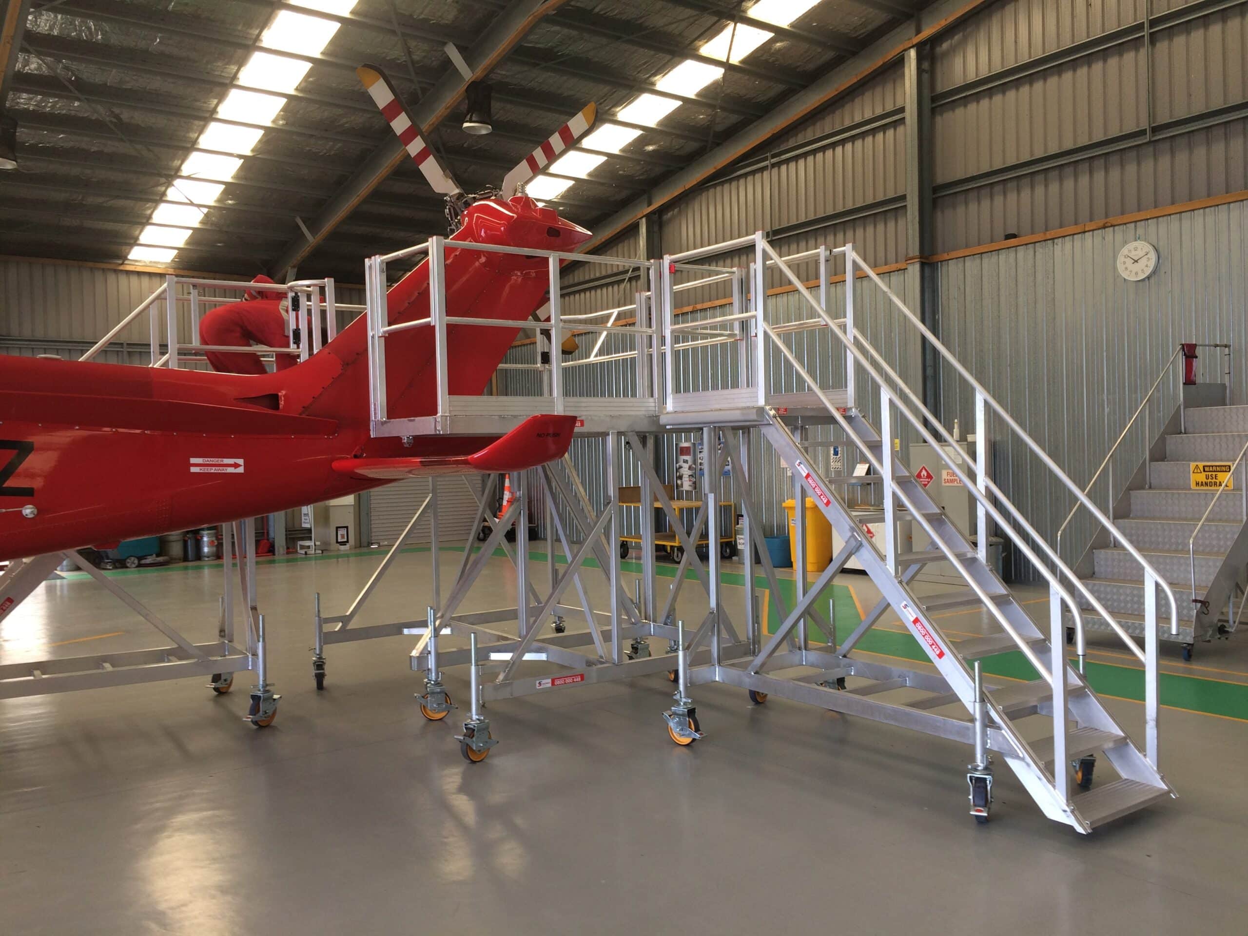 Safesmart designers created a modular helicopter maintenance platform with mobile stairs which could be used for multiple access points around the helicopters.
