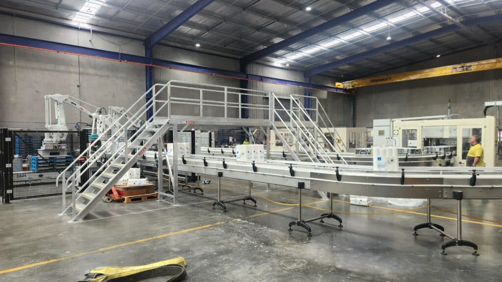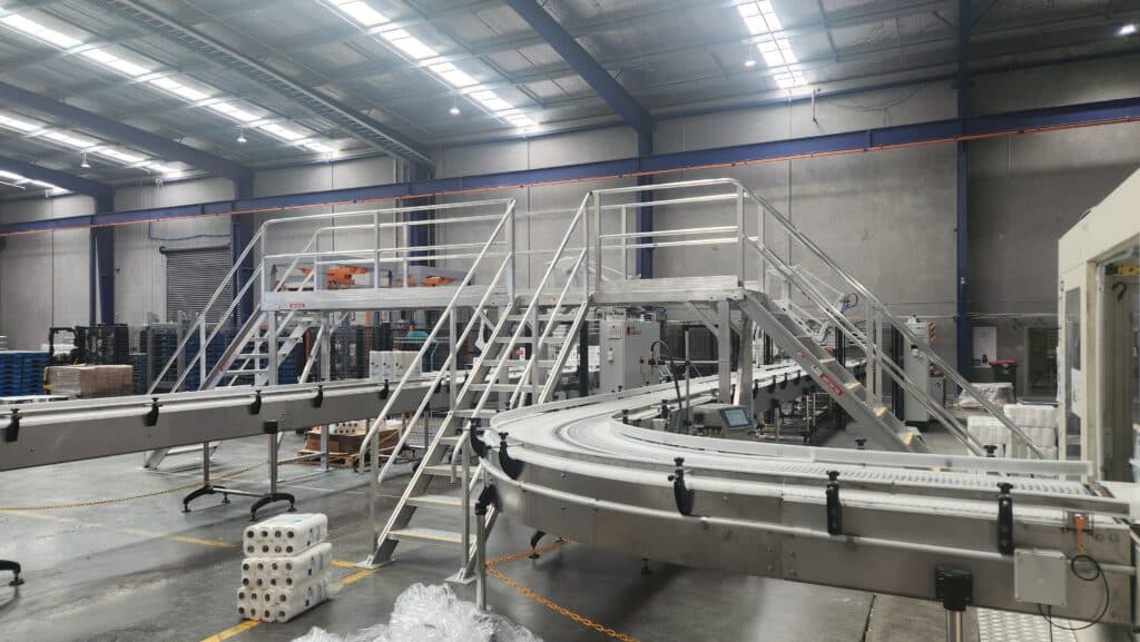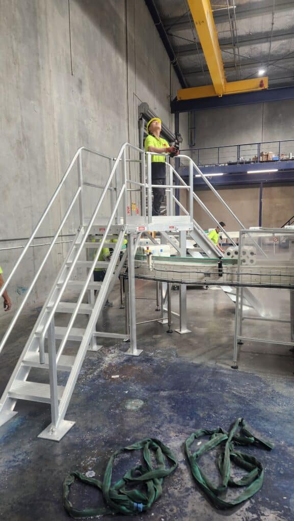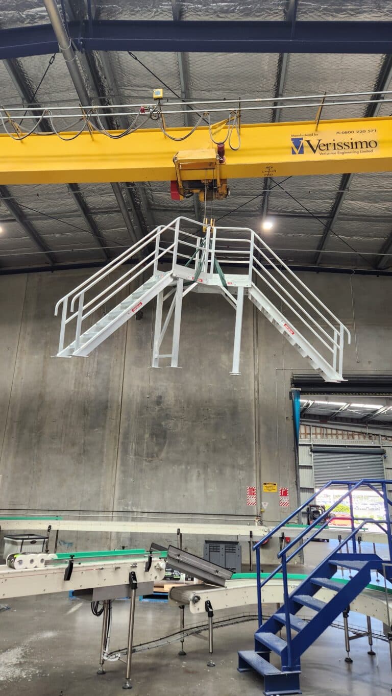 Once manufacturing was completed, the custom Stepovers gave easy, safe and efficient access over conveyor belts. They were assembled out of the way of the main production line and then craned into place using the gantry crane which minimised downtime during the install.