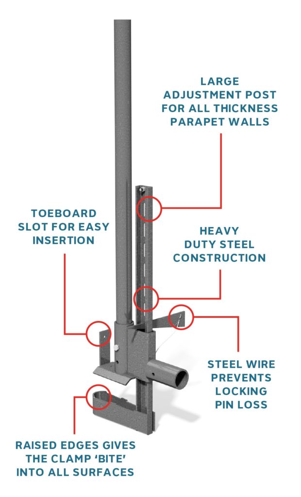 The King Klampz Edge Protection Railing System stands out as a user-friendly and cost-effective alternative to traditional post-and-panel systems. Its key advantages include:
