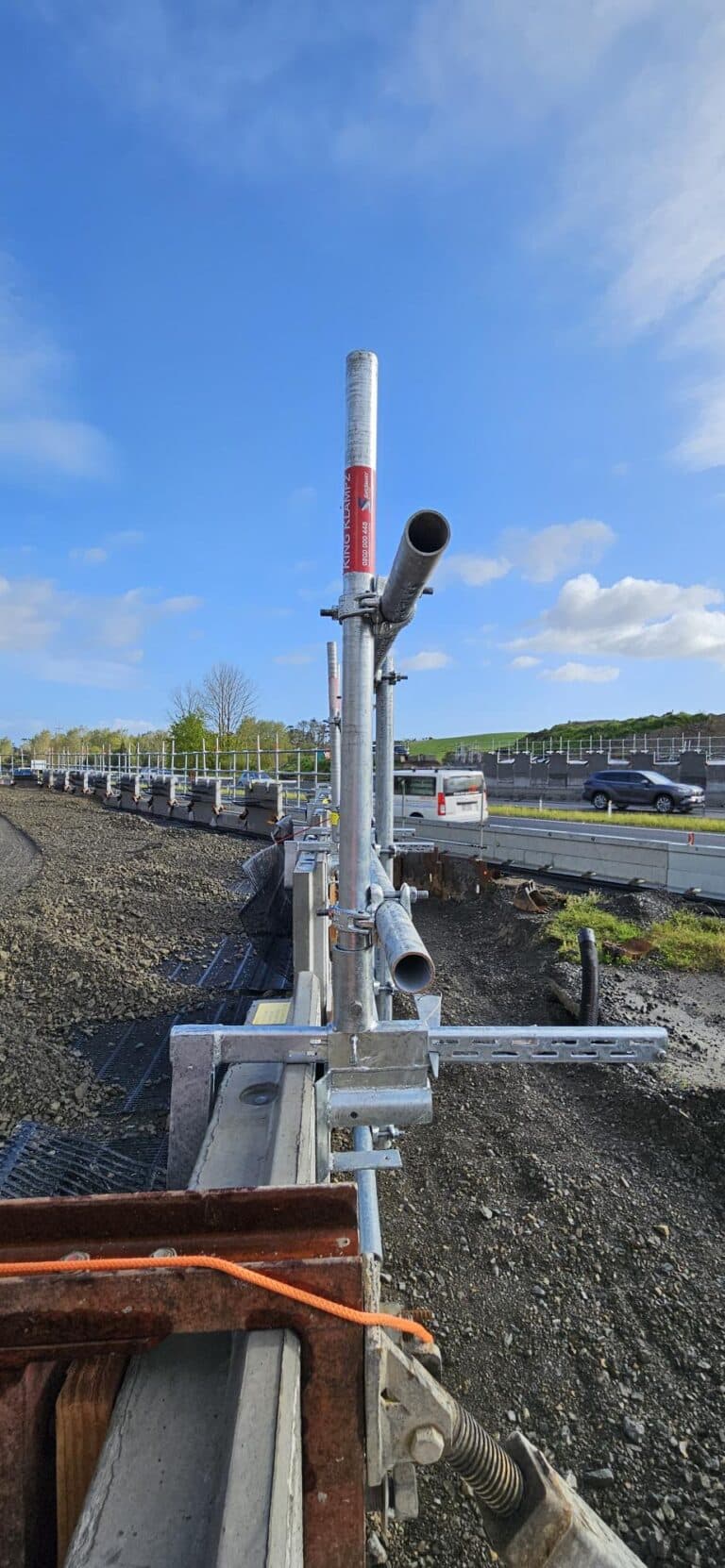 The overpass bridge required the installation of precast concrete blocks to retain the abutments. Traditional edge protection systems posed an issue for the project as they interfered with the installation sequence, slowing progress and exposing workers to potential hazards.