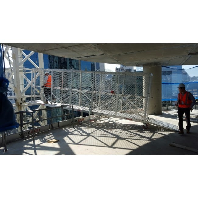 SafeSmart designed and manufactured this Crane Access Bridge, featuring lifting points for craning, high-grade aluminium construction and winching height, and SafeSmart’s unique hinged, spring-loaded fixing brackets to accommodate any movement or swaying of the crane whilst the bridge is deployed.