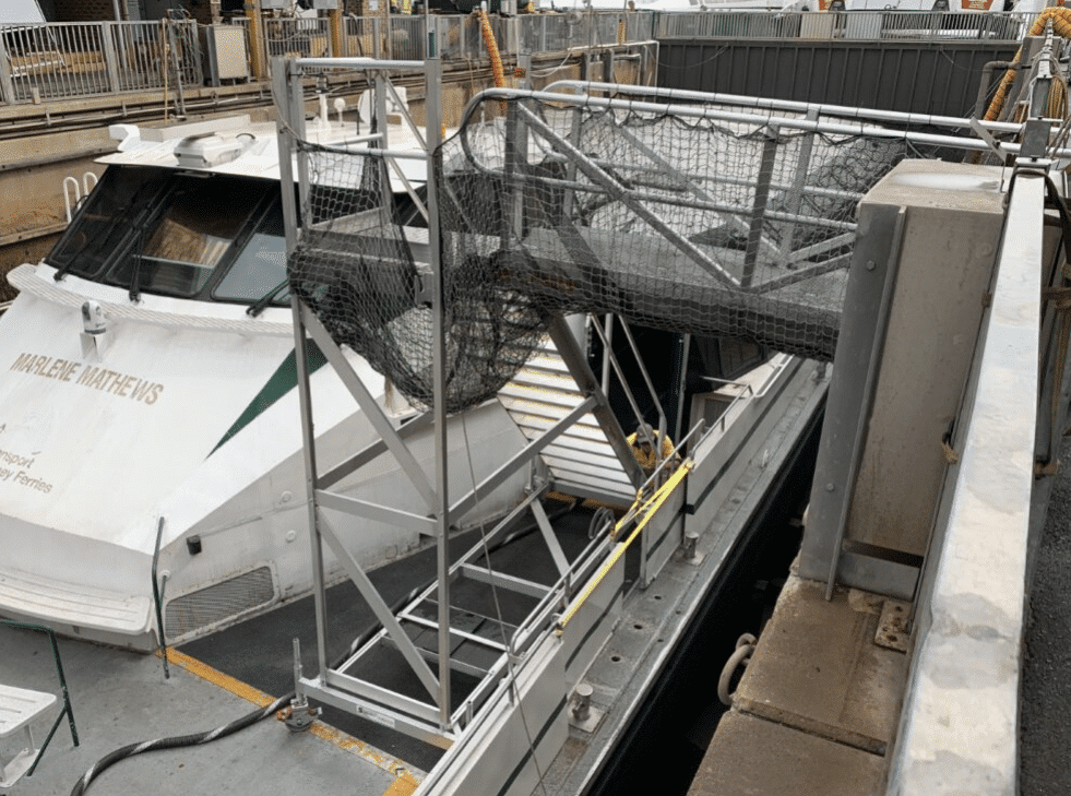 Our Marine dock systems were originally designed and built for a maintenance facility for the iconic Sydney Harbour ferries in Australia; the client needed to reduce time spent setting up on-foot height access to the dry dock and to better protect workers from falls.