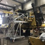 This platform provides safe access right to the engine bay, removing the need to step on the tracks or the push-arm while servicing. This design is suitable for direct access to the engine bay with the tracks either on or off the machine and removes the risk of the user slipping or falling whilst on the track. Provided in a LH and RH combination, this design provides complete access to the dozer.