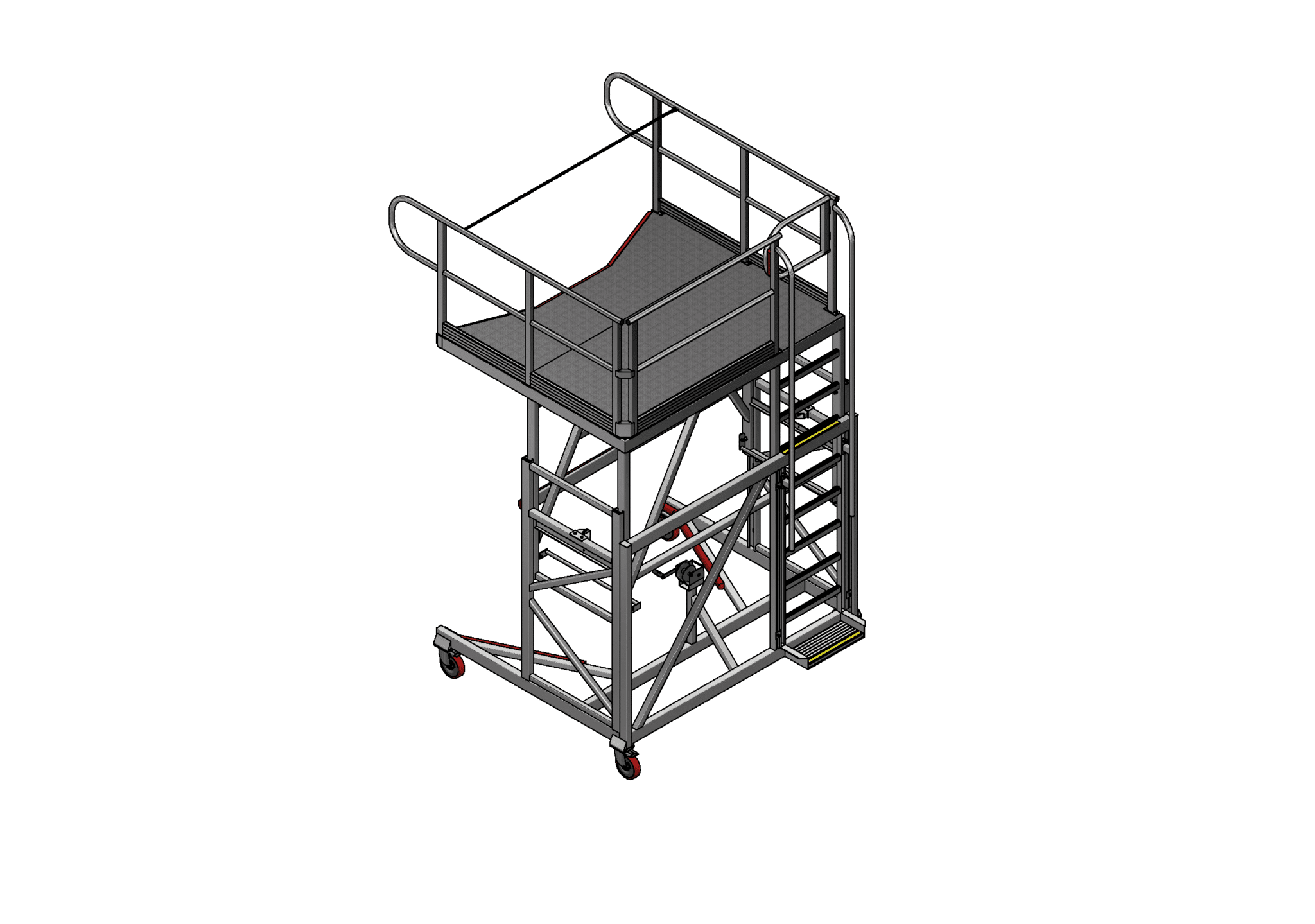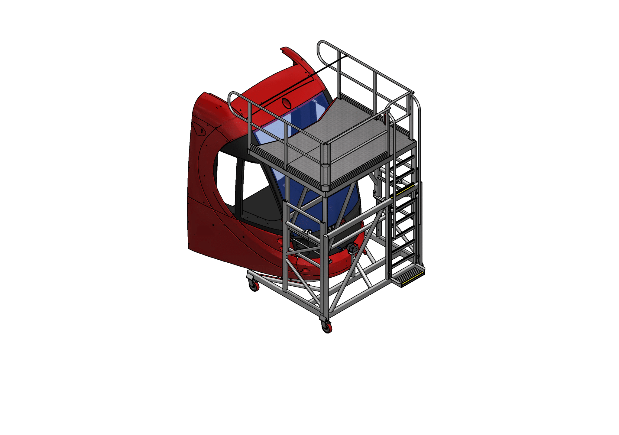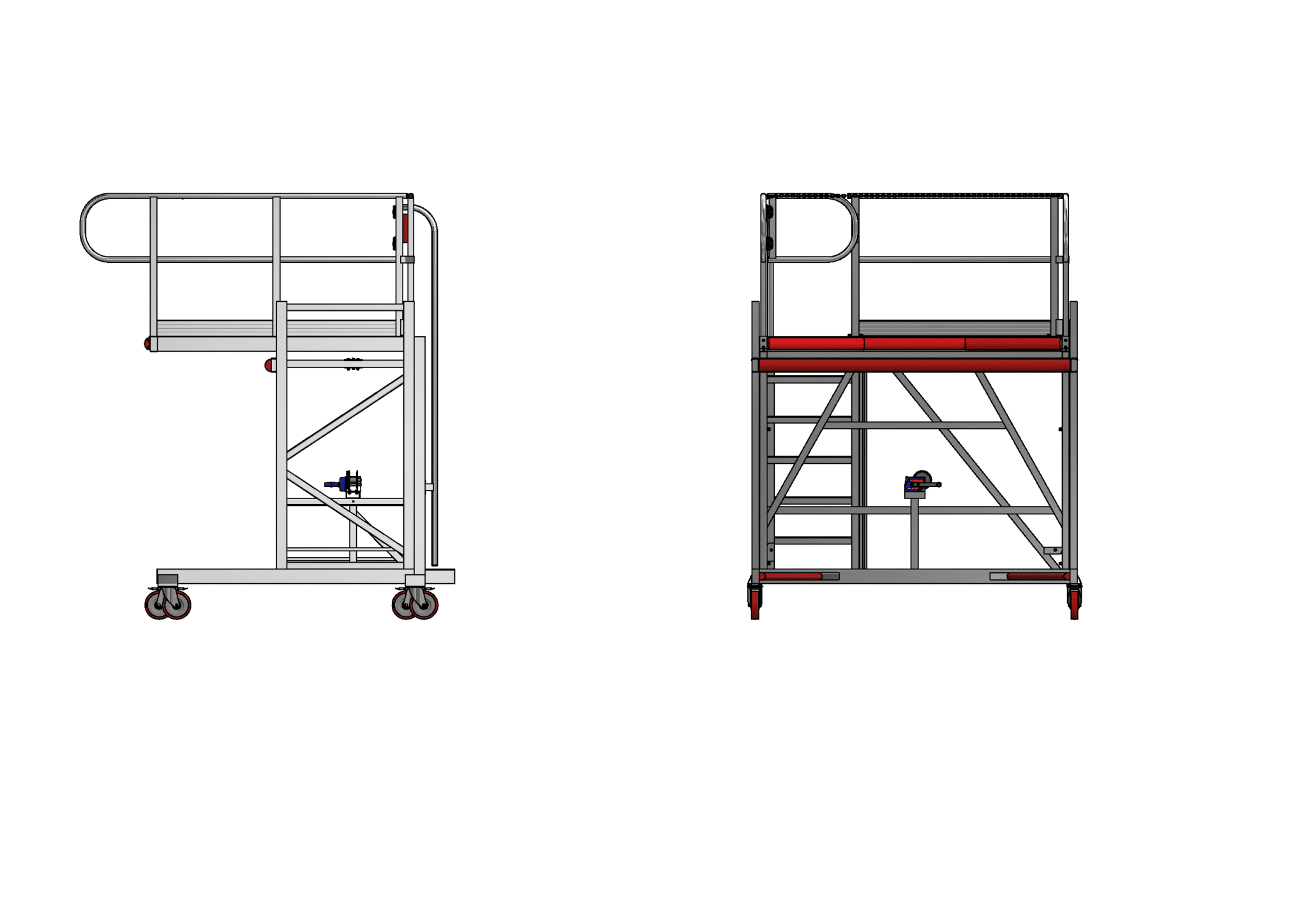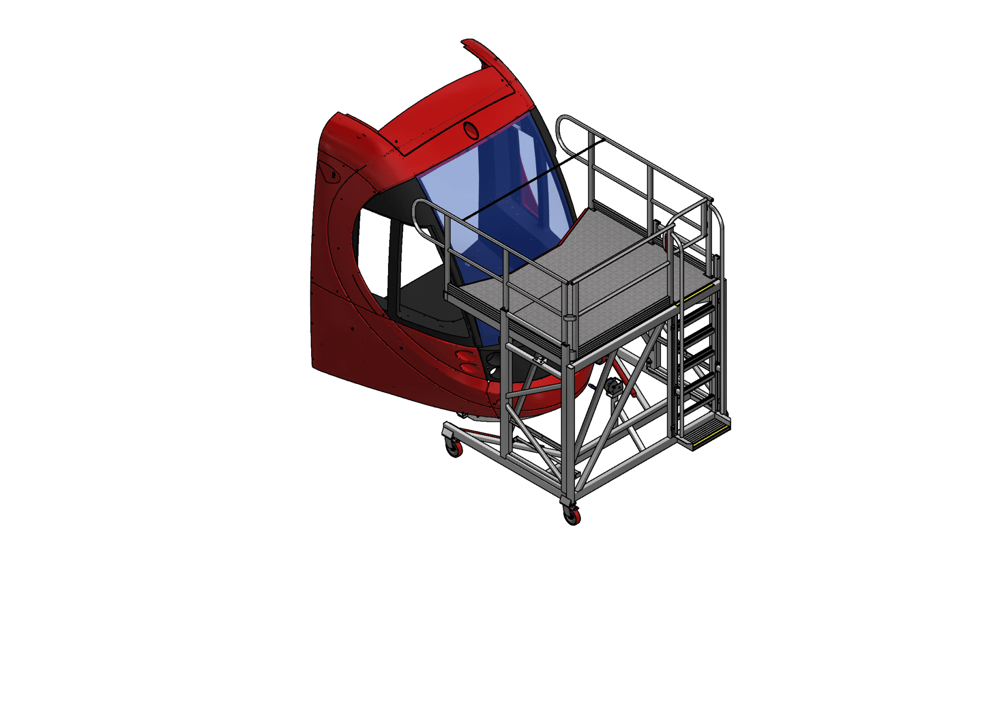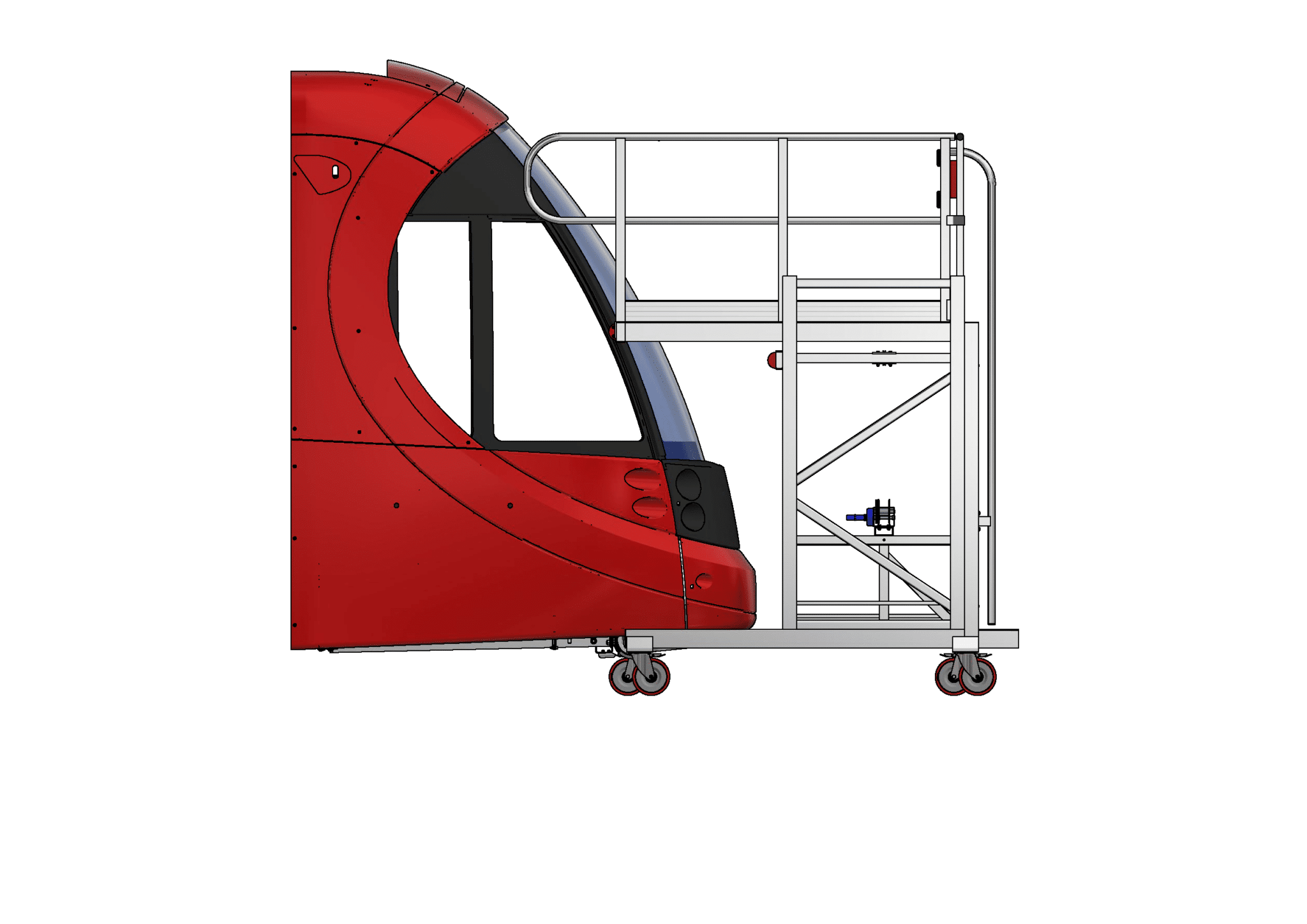 The Front of LRV Adjustable Height Access Platform is designed to be both compact for typically smaller LRV stabling facilities, while providing a large working area for the tasks to be completed. The large range of adjustment in height also allows access to the roof area at the front of the LRV.