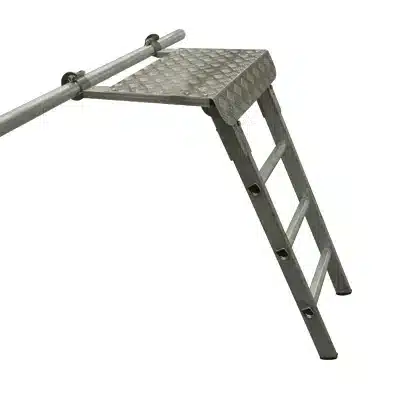 Introducing the Scaffold Step Platform Ladder – the ideal solution for safe and efficient installation of handrails on the next lift up without operating by an exposed edge. With adjustable platform height in 25mm increments and a unique locking mechanism, relocation is fast and simple. Constructed from lightweight aluminium, this ladder is easy to use and relocate, and can be folded flat for compact storage. Its versatile design allows it to fit on Proscaf, tube and fitting scaffolds, making it an essential tool for any construction site. With the Scaffold Step Platform Ladder, you can ensure your team’s safety while also increasing their productivity.