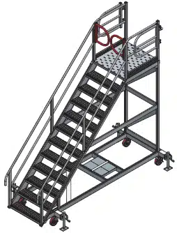 The innovative design of the Batwing Gate incorporates self-closing mechanics, ensuring that the gate closes securely behind the user, mitigating the risk of accidental falls. The gate’s capacity to fold against the side of the maintenance platform exemplifies its thoughtful design, making it a space-saving solution when not in operation.
