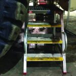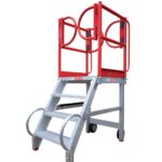 The stand features ultra-wide stair treads and a 60º step angle of access, combining comfort with practical functionality. This is especially advantageous during extended periods of maintenance work, reducing worker fatigue and increasing job satisfaction. The guardrail system is a testament to SafeSmart’s commitment to safety, with quick-release functionality allowing for rapid changes to the protective perimeters and the inclusion of dual Batwing Gates for all-around fall protection.