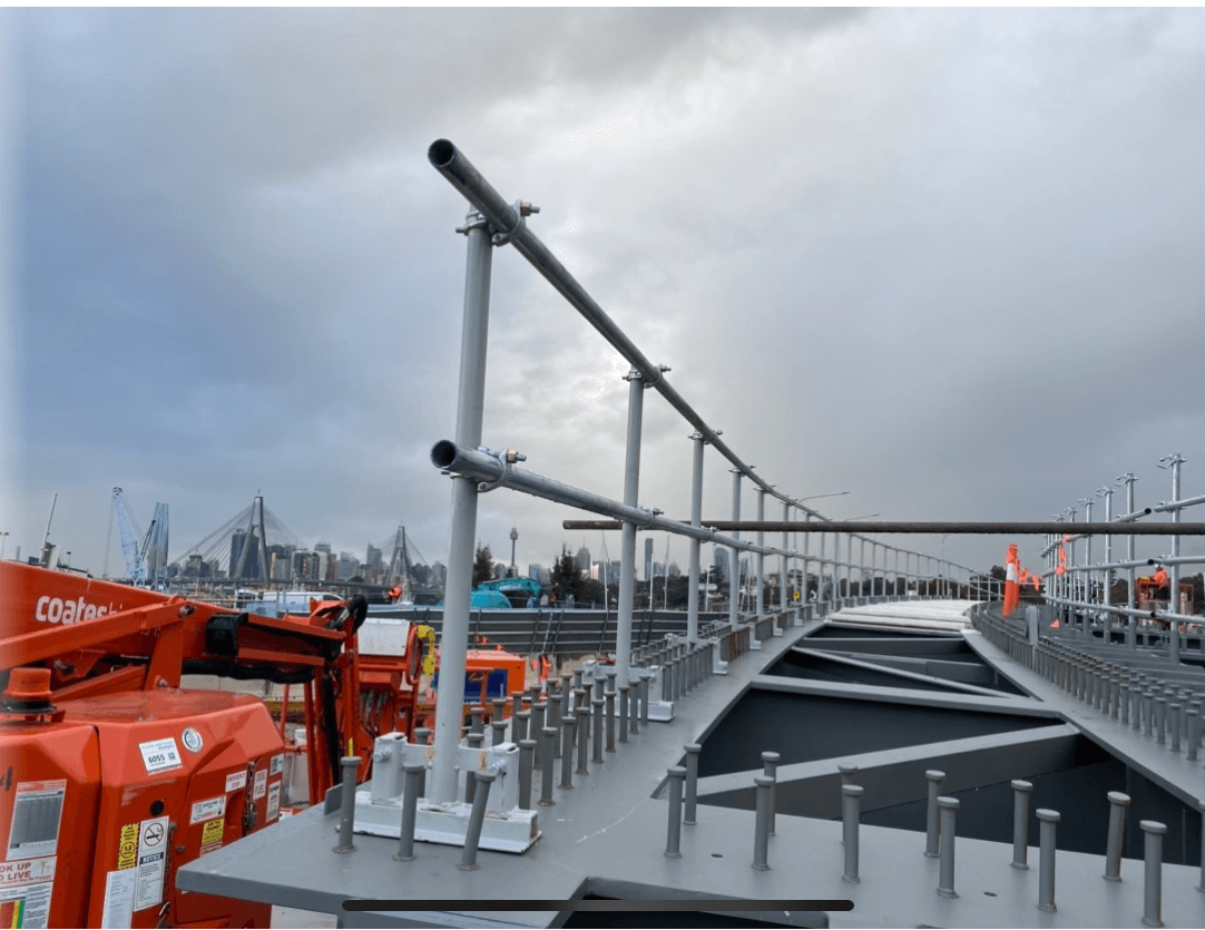 On a major infrastructure project in NSW, Edge protection was needed to be pre-installed onto steel bridge girders on the ground before the bridge girder was lifted into position.